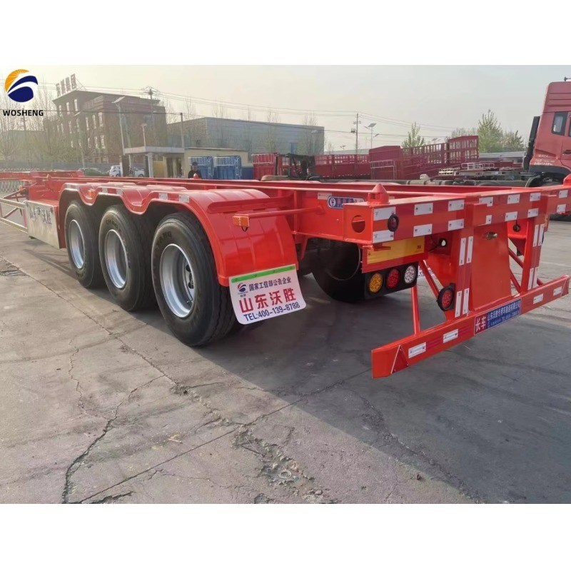 Wosheng Skeleton Semi Trailer è un semitrailer con dimensioni standardizzate (personalizzazione) e struttura di scheletro in acciaio, utilizzato principalmente per il trasporto di container.forte resistenza, può adattarsi a un ambiente di trasporto complesso ed è una parte importante del trasporto logistico moderno.ferrovie stradali e altri trasporti, può soddisfare le esigenze di trasporto di contenitori di diverse dimensioni e forme.